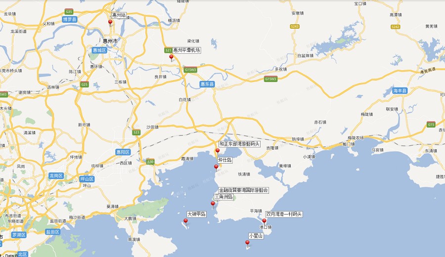 和正東部灣游艇碼頭:40公里,預(yù)計(jì)40分鐘