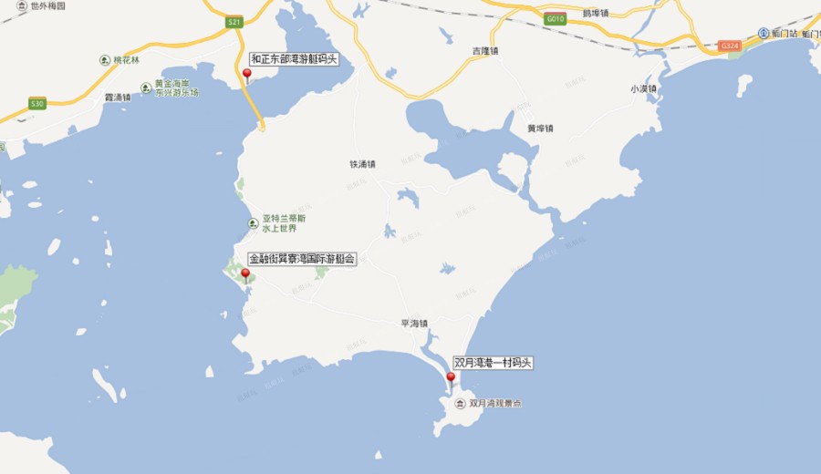 雙月灣港一村碼頭:80公里,預(yù)計(jì)90分鐘